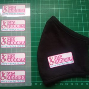 If you would like a mask, send a message to the email address below with the subject ‘Gig Buddies Face Covering‘. We will then send you the link to donate, and post out your face covering. You will receive a black face covering along with an iron-on transfer of our logo and instructions on how to use this.