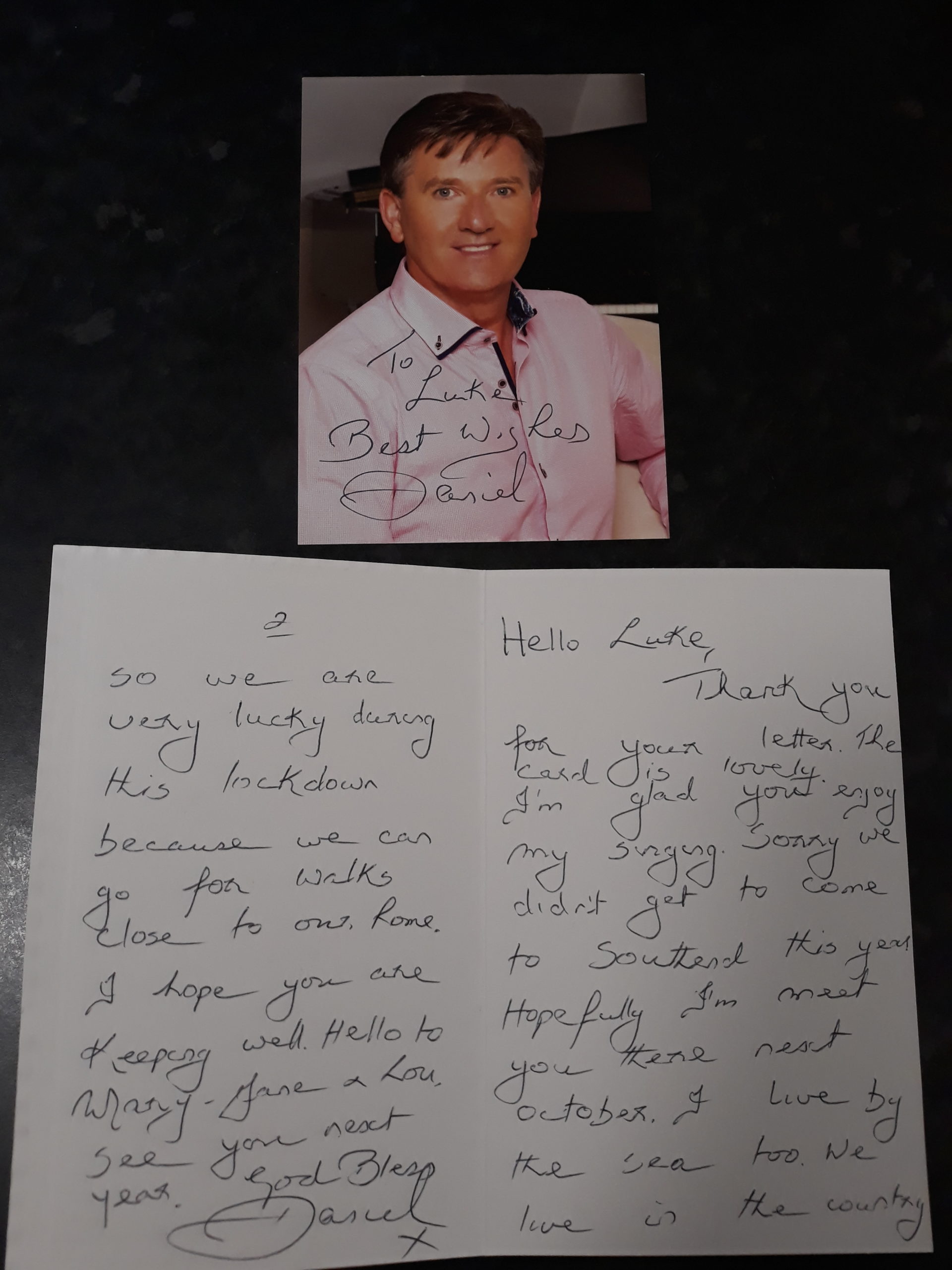 Last week, Luke received a lovely, personal, handwritten card and signed photograph of Daniel! We are all over the moon and excited for Luke to have received this.