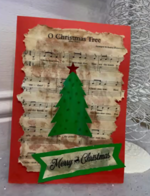 In second place was Jimmy! Jimmy made his festive creation from some sheet music which he stained with tea bags – how creative! As a prize, Jimmy will receive a mug with his Christmas design on it for everyone to admire.